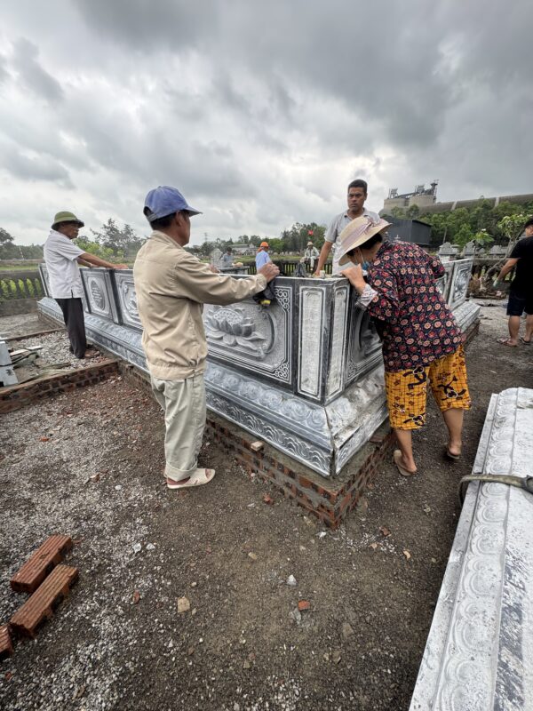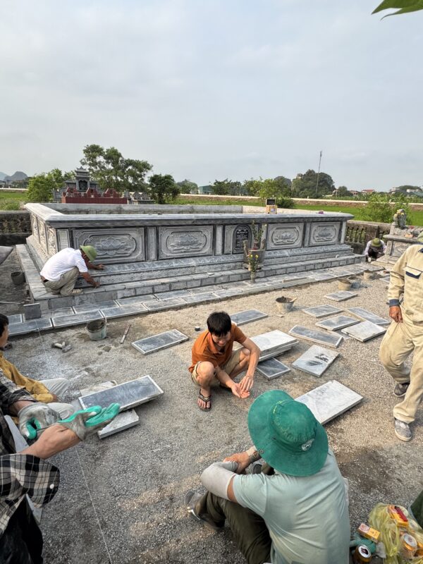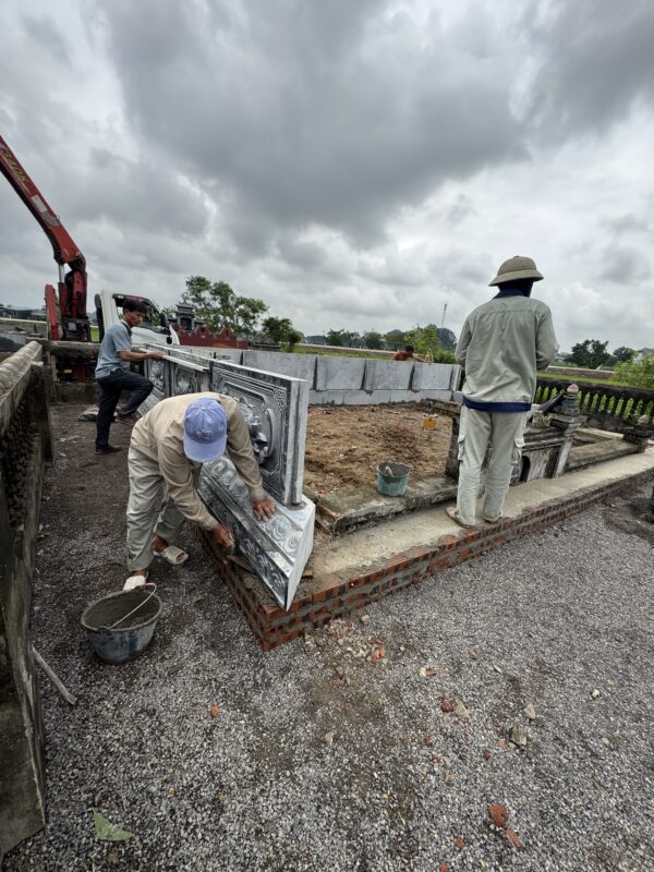 Vì ngôi mộ rộng nên để chịu được lực khi đổ đất vào phía trong thì phần thiết kế độ cao,độ dày đá phải đảm bảo.